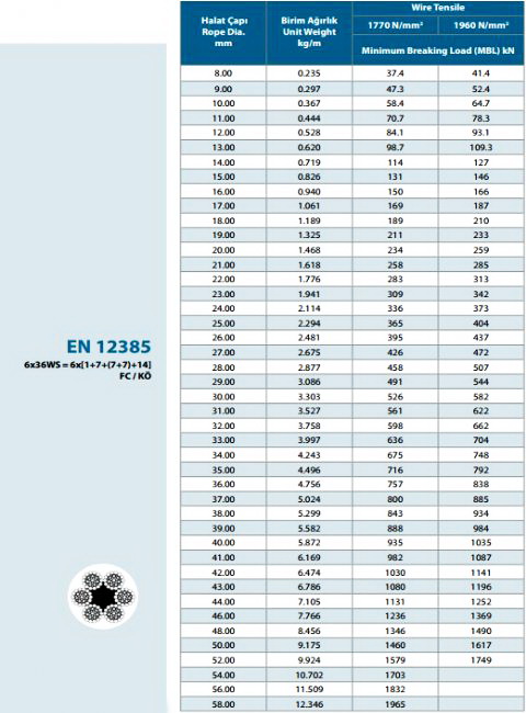 6 X 36 LİF ÖZLÜ ÇELİK HALAT